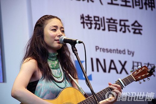 7月13日,在日本产业馆网上日本产业馆JAL舞台上,日本创作女歌手植村花菜为世博游客带来一场名为“卫生间神灵”的特别演唱会。
