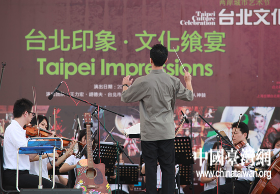 中国台湾网6月16日上海消息 16日上午,台北市立交响乐团在上海世博园内演出。当天,“台北印象·文化飨宴”演出活动在上海世博园城市广场举行。(中国台湾网 田云鹏 摄)