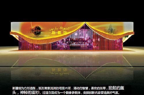 王克林说,新疆馆将通过最先进的三面折幕电影技术,展现新疆悠久的历史、多元的文化、大美的山河,丰富的资源和现代的城市。同时还有一些互动技术来展示特有的新疆元素,这将是新疆馆最富魅力、最值得期待的部分。