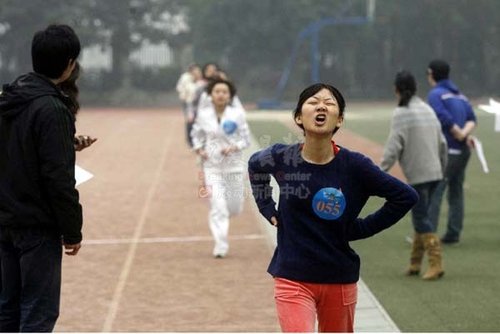 面试场外,选手需要进行体力测试。记者 何熠 摄