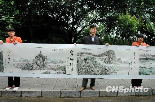 据介绍,桂林书画艺术家们经过40多天深入实地,潜心研究,精心创作,完成了这幅鸿篇巨制。他们准备将这幅桂林山水巨幅长卷转交有关部门,在上海世博会上向中外游人展示“玉簪罗带韵无穷”的桂林山水风光。(唐梦宪)