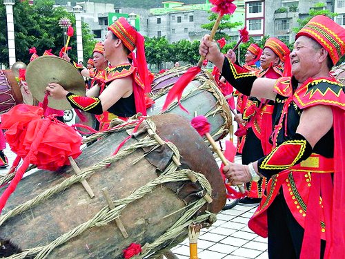 紧接着马山会鼓又以欢腾的鼓声点燃庆典广场。在会鼓手队伍中,一位身材略微矮胖、满脸笑容活似一副“笑面佛祖”的鼓手,吸引众多采风摄影家的镜头定格。
