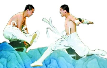 少林武僧正在表演专门为上海世博会打造的原创舞台剧《少林寺之武僧传奇》。新华社发