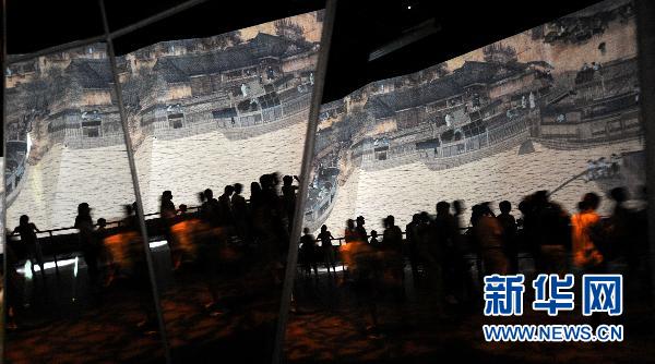 资料图片:7月15日,游客在上海世博园中国国家馆内的“东方足迹”展区观赏《清明上河图》。 新华社记者 吴晓凌 摄