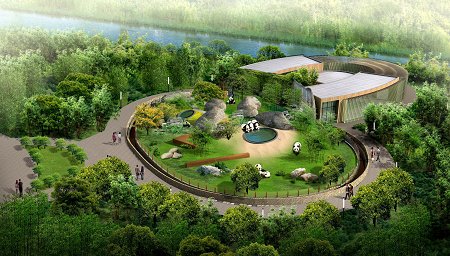 据了解,根据安排,10只世博大熊猫在下半年将在上海野生动物园展出,为了迎接世博大熊猫,上海野生动物园新建了大熊猫馆。新建大熊猫馆最大的特色就是“熊猫林”,根据大熊猫馆效果图,整个大熊猫馆,仅后院的竹林就有1万平方米,整个大熊猫馆都被一片翠绿包围;大熊猫馆的前院,占地在1000平方米左右,是大熊猫活动的主要场地,有流动的活水、让大熊猫攀爬的大树、以环保材料搭建的游乐项目,场地也种有竹子;中间则是室内展馆,是大熊猫室内活动、休息、科普的主要场所,面积约500平方米,还装上了空调;游客观赏走廊呈椭圆形,单向流动,即使在人流量比较大时,也不存在看不到大熊猫的情况,而大熊猫的“寝室”则要根据每个大熊猫的特点来设计,有的大熊猫喜欢在树上睡觉,那就要考虑室内有树干,也会考虑做个吊床。