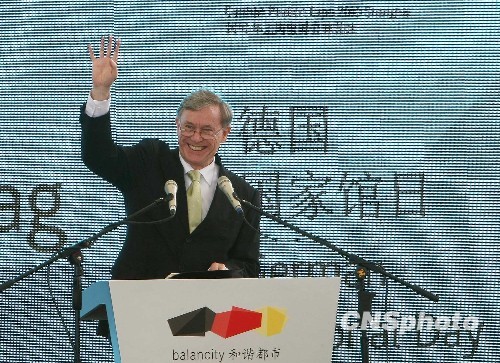 5月19日,德国总统霍斯特·克勒出席上海世博会德国国家馆日活动,并在阳光谷观看文艺演出。 中新社发 杜洋 摄