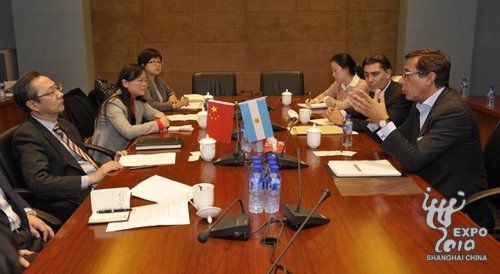 上海世博局副局长黄健之与阿根廷国际贸易副国务秘书长路易斯·玛利亚·克雷克勒一行沟通阿根廷参展事宜