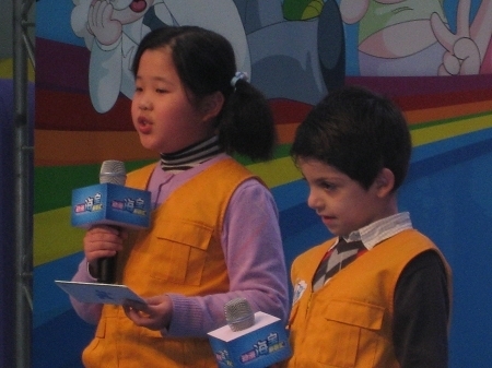 授旗仪式上,本次大赛的小候选小记者代表:分别来自闸北区第二中心小学三年级的郭馨虞,和来自以色列的小朋友TAHA,向全世界的小朋友发出邀请,邀请伙伴们来上海参观世博会,并参加本次国际小记者报大赛。其中TAHA小朋友的家庭来到中国已经16年了,他们全家非常喜欢中国文化。
