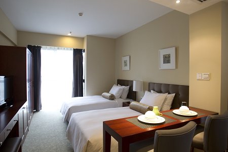 在陆总的带领下,记者来到了世博园区内的世博村。一条雪野路,将村里的普通公寓和酒店式公寓划分成B地块和D地块。B地块由竖立着17幢8层到20层不等的普通公寓,组成了“世博东湖公寓酒店”;D地块则是7幢24层的酒店式公寓,名为“世博锦江公寓酒店”。