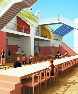 零碳馆由两栋零碳排放的建筑前后相接而成,其原型取自于世界上第一个零碳社区———伦敦贝丁顿零碳社区。