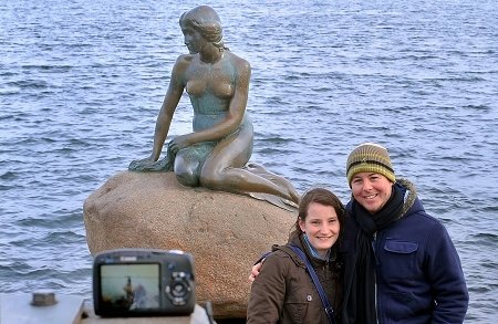 启程仪式上,哥本哈根市民纷纷赶来与小美人鱼合影送行。