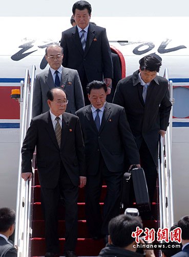 4月29日,朝鲜最高人民会议常任委员会委员长金永南乘坐专机抵沪,将出席世博会开幕式及世博相关活动。