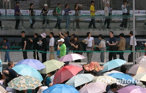 高温、炙烤,上海世博会开园第二天,上海最高气温骤然升高至近30℃,园区内冷饮、阳伞等“清凉”生意红火,高温“烤”验的不仅是园区内的各色喷雾、降温装置,还有烈日炎炎下依旧排队候场的观展者耐心。