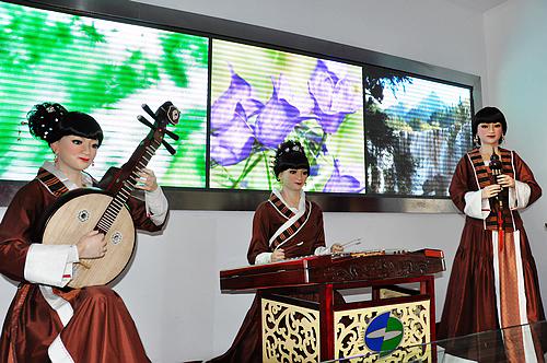 三位美女机器人负责迎宾 这是世界上首个会弹奏中国民乐的机器人组合 人民网记者 马丽娅 摄