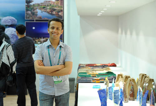 默罕默德今年23岁,是华东师范大学的一名留学生。因为既会阿拉伯语和英语,还会讲比较流利的汉语,他成了世博园约旦馆的一名工作人员,每天在展示和出售来自死海的天然护肤产品的展位前回答游客的咨询,并时不时帮馆内其他约旦人与游客进行交流和沟通。开幕以来,参观世博园的游客不断增加,由于约旦馆无需排队和预约,馆里总是被来往的游客填得满满当当。从早到晚,穆罕默德都要站在展位前忙碌,只有在下午时用很短的时间出去吃个饭。