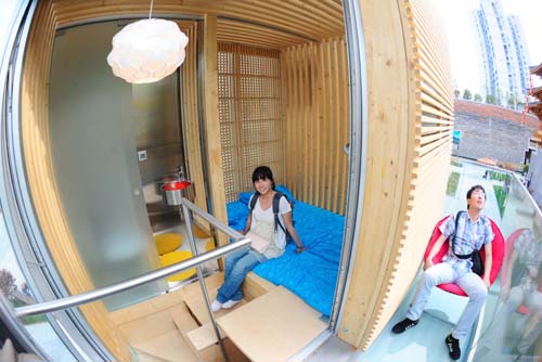 “造价还是有点高”,了解到小屋的整体造价需要大约80万人民币时,陈龙说,“尽管按单位面积来算,也算不上天价,但在我们的城市里,并不容易找到随时可以安放的地方”。设计方带来的这个案例展示,是想给需要这种房子的人一个购买的机会,也是提供一个房屋居住的解决方案,特别是在房价很高的城市里,这样的设计符合世博会的主题,城市让生活更美好,关键是要为不同的需求提供相应的解决方案。通过亲身体验,陈龙和杭星的共同感觉是,这样的现代化“蜗居”解决方案相当有意义,目前虽然还只是在实验阶段,但未来的前景应该是很广阔的,关键在于要把成本再降低,再解决安放地点许可的问题。 “能住在这样的房子里,还是挺诱人的,特别是对买不起住房的年轻人来说,也多了一种选择”。