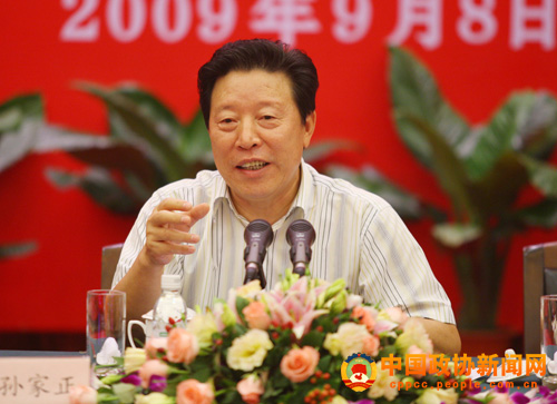 2009年9月8日,孙家正在上海市政协诵读即兴创作的诗歌《我去看世界》。(上海市政协提供)