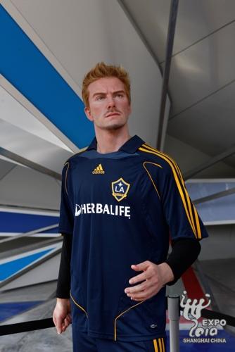 据悉,贝克汉姆蜡像是接替前两周在此展出的鲁尼蜡像,在世界杯期间驻守英国馆,之后便会回到上海杜莎夫人蜡像馆。而“卫兵”则是特地从伦敦杜莎夫人蜡像馆借来,会为英国馆站岗到世博会结束。