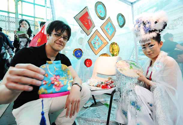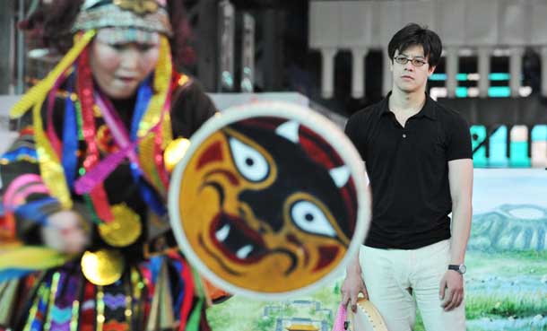 丹青受朋友之邀来到上海世博园时,正好赶上黑龙江活动周,宝钢大舞台的中国元素传习区展示了黑龙江优秀的民族文化和传统民间工艺。“马背上的民族”鄂伦春族、“鱼皮部落”赫哲族的民俗文化深深吸引着这位来自遥远北美洲的年轻人,他对现场展示的鄂伦春族居住的“撮罗子”、赫哲族的鱼皮衣兴趣浓厚,还跟着赫哲族的民间艺人学跳了萨满舞。