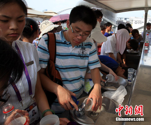 中新网上海7月1日(祝翔君)根据世博气象台实时监测,1日上海世博园最高气温超过37摄氏度。天气“烤”人,让世博园内直饮水设施成为此间最火爆的设施。记者从运营商了解到,将再次增加部分直饮水设备,以应对未来高温、高客流。