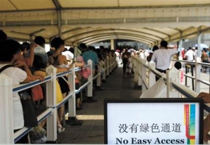 记者昨天发现,不少热门馆如瑞典馆、日本馆、挪威馆、爱尔兰馆都没有开通任何绿色通道。在日本馆外,轮椅专用通道排队入馆的时间和普通观众入馆的时间是相当的。爱尔兰馆的绿色通道曾开放过一段时间,但有一些游客不遵守规则,给工作人员的工作造成了很多的障碍,最终关闭。人气颇旺的瑞典馆同样没有绿色通道。工作人员表示,这主要是因为展馆入口处的电梯发生故障,“就算通过正常排队,坐轮椅和坐婴儿车的游客也没办法进馆”。