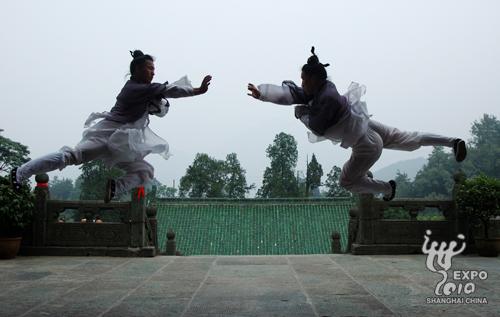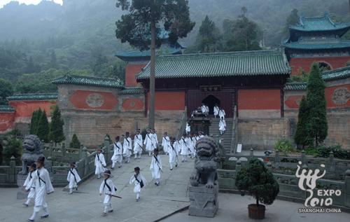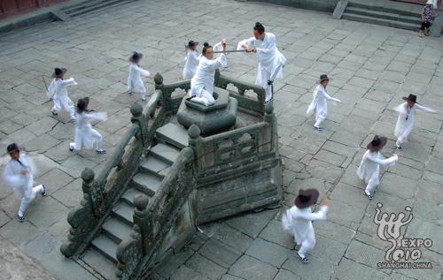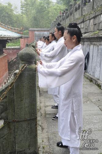 武当道教功夫团以张三丰为祖师,以技击为末技,以养生为宗旨,把道家尚柔尚静的思想和养生原则融于逍遥缥缈的武当功夫,雍容高雅,内蕴无穷。他们始终如一地恪守道家谦虚尚静的原则,以武弘道,以身证道,传承着武当道坛的圣火不熄。