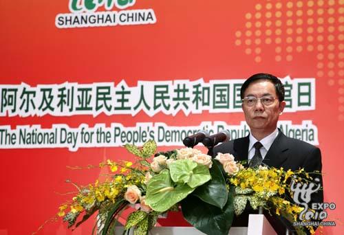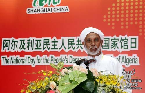阿尔及利亚民主人民共和国国家馆日官方仪式7月31日上午在世博中心隆重举行。阿尔及利亚国务部长兼总统个人代表阿卜杜勒阿齐兹·贝勒卡迪姆(Abdelaziz BELKHADEM)、中国铁道部副部长彭开宙出席仪式并致辞。上海市政府副秘书长尹弘主持仪式。上海世博会中国政府副总代表罗小光等出席仪式。