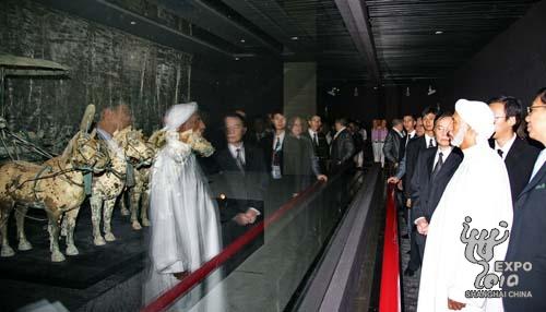 阿卜杜勒阿齐兹·贝勒卡迪姆一行在中国国家馆参观国宝“铜马车” 摄影:周雷