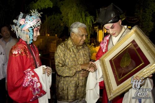 新加坡总统纳丹在观摩上海世博会之余,22日晚特意来到青浦朱家角观赏实景园林版昆曲《牡丹亭》。中国驻新加坡大使魏苇和新加坡驻华大使陈燮荣等陪同观赏。