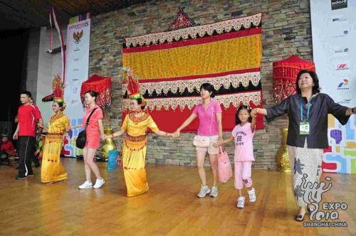今天与叶珍母女一起来印尼馆的还有王凯、王烨夫妇,他们与叶珍同在一家保险公司工作,叶珍母女把获得的两张机票中的一张送给他们,让他们也享受到了印尼馆带来的幸运。(世博网)