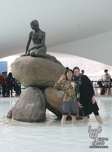 今天,10名幸运儿不仅享受到了畅游丹麦馆的机会,还在露天广场品尝了地道的丹麦甜品和饮料。随后,在丹麦讲解员的全程陪同,网友们进行了参观活动。有的网友骑着自行车,沿着双螺旋坡道盘旋而上;有的领略静静伫立在“海港”中的“小美人鱼”;还有的观看影片和摄影图片,细细感受丹麦人的生活方式。为了迎接今天的幸运儿,馆方还特地请出了国宝“小美人鱼”,与网友近距离合影留念。