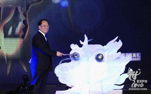 香港特别行政区行政长官曾荫权为龙“点睛”