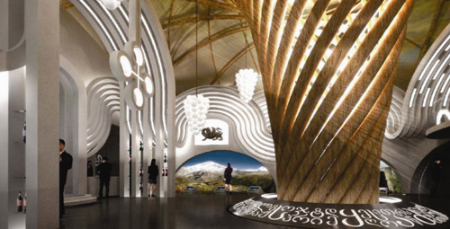 展馆似是一个典型的格鲁吉亚老城中的“院落”, “院落”正中是一棵巨大的葡萄“树”,隐含了格鲁吉亚城市的灵魂。 “院落”中的博物馆介绍格鲁吉亚的历史,四个展示壁龛分别展现格鲁吉亚古老的历史遗迹、文化、自然风光、城镇、海滨以及首都附近的滑雪胜地,表达“美丽的自然、风景、文化历史遗迹紧密相连”的主题。