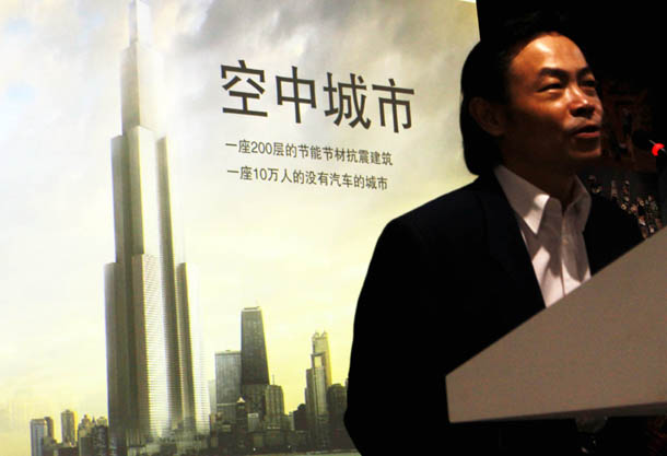 当日,远大可建“空中城市”建筑方案设计招标信息发布会在上海世博园远大馆举行。国内外知名建筑设计公司代表及专家应邀出席。这座“空中城市”为“混合社区”综合楼,集住宅、办公、商业、餐饮、影剧院、学校、医院等社区功能于一体。大厦设计高度666米,地上200层,建筑面积124万平方米,可容纳7至11万人。据悉,远大可建“空中城市”建筑设计并不是为了追求摩天大楼“地标”意义,它的目标是回归建筑本质,用安全而又造价不高的创新技术手段建造一座普通人买得起、用得起并有助于减少交通能耗和环境污染的“竖向城市”,让人们可以“足不出户”就近办公、学习、生活。