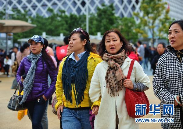 10月26日,游客在上海世博园参观游览。当日,上海气温骤降,最高气温降至15摄氏度,但广大游客观博热情不减,纷纷穿上厚衣服来到世博园参观游览。截至当日21时,入园人数达30.87万人次,上海世博会累计参观人数达到7108万人次。新华社记者张国俊摄