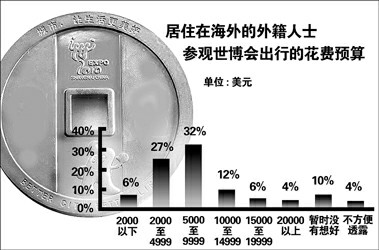三成多的外籍人士在华预计消费5000-9999美元(见图③),七成的外籍人士说主要预算将花费在上海。