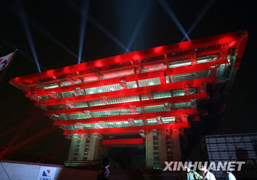 6月22日晚,2010年上海世博会中国馆35千伏变电站正式投运,有“东方之冠”之誉的中国馆在夜幕下初绽美丽的光芒。中国馆正式通电标志着世博园区各项供电工程全面进入冲刺阶段。新华社记者 任珑 摄(资料图片)