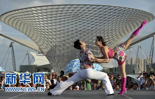 8月7日,演员在上海世博园表演海南风情舞蹈。当日,海南风情歌舞表演——《椰风海韵》在上海世博园庆典广场举行,独具特色的歌舞让游客在海南活动周来临之际,提前感受到浓郁的海南风情。新华社记者周华摄