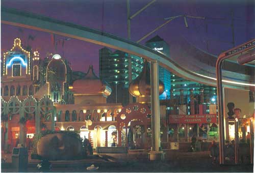 长达0.5英里的奇景墙是世博会参观者流连忘返的地方,休闲节目、咖啡酒吧、美味小吃、童话般的意境、琳琅满目的小玩意儿,都是吸引参观者的安排,当年美国度假者的日程里大都有“奇景墙”的计划。或许,相对于以“水”的主题展示,奇景墙更能够带来节日的欢乐与浪漫气氛。美国早期世博会的“大道乐园”、“派克乐园”都是类似的设计,以娱乐项目吸引参观者,而新奥尔良的奇景墙更具休闲和文化品位。