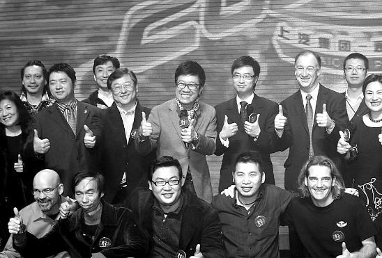 曹启泰(二排右三)和他的世博会电影制作团队。郑琳 摄