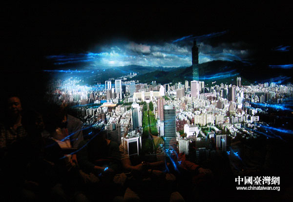 在虚拟的台北101大楼中,360度3D剧院向人们展现台北的生活味道。(中国台湾网 钟宝华 摄)