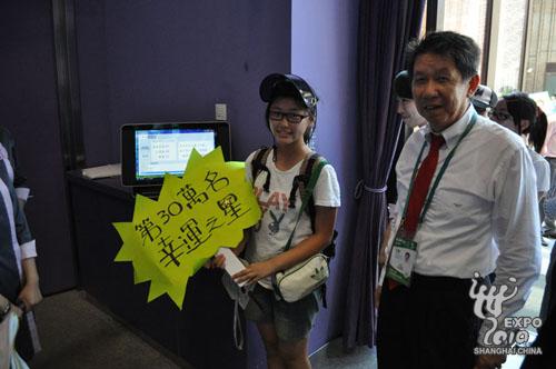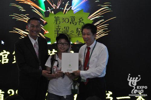 19日下午,上海世博会城市最佳实践区台北案例馆迎来了第30万名游客,来自香港的杨嘉怡幸运地成为了当天的明星游客。