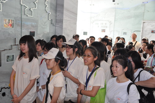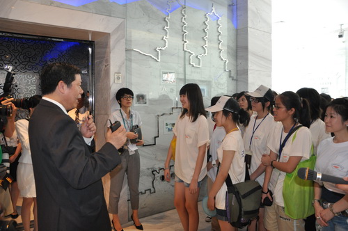 参加2010沪台青少年走进世博千人夏令营的台湾师生日前来到台湾馆参观访问。台湾馆总馆长叶明水亲自接待并向台湾老师和学生介绍了世博台湾馆营运以来的情况。这是记者在现场拍摄的一组现场图片。(张玉龙摄影报道)