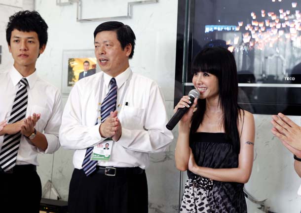 当日,台湾歌手蔡依林来到上海世博会台湾馆,客串担任台湾馆的一日馆长,并为工作人员加油打气。