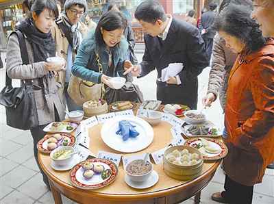 11月29日,“老庙微型点心宴”亮相上海豫园新开张的“亚洲美食汇”。各餐饮店的门前都设立了“点评箱”,请市民现场评选“我最喜爱的十大小吃”,评选出的小吃有望在明年进入世博园区的“世界美食一条街”。(杨毅 摄)