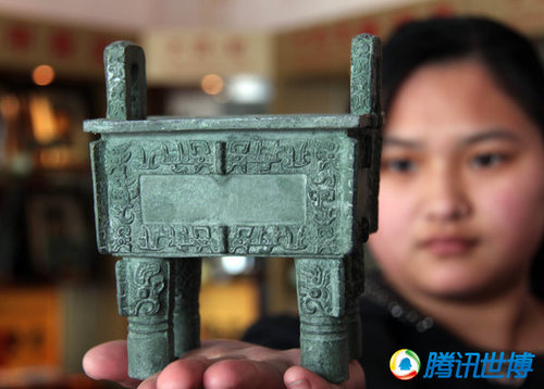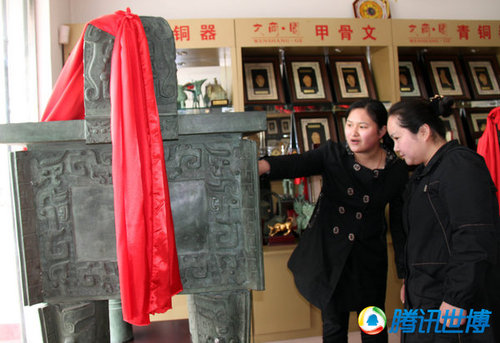 2010年4月7日,河南省安阳市文商阁文化礼品公司拍摄到的一司母戊鼎仿真品。