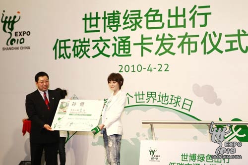 世博网4月22日消息:今天是第41个世界地球日,全球首款低碳交通卡——“世博绿色出行低碳交通卡”在上海正式发布。发布仪式上,著名影星孙俪第一个购买了世博绿色出行低碳交通卡,并宣读了世博绿色出行倡议书。