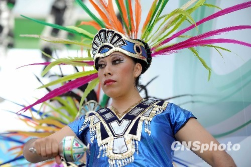 5月1日,上海世博会开园第一天,游客在美洲广场欣赏浓郁的墨西哥风情舞蹈