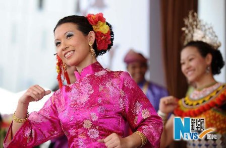 5月1日,演员在马来西亚馆开馆仪式上表演舞蹈