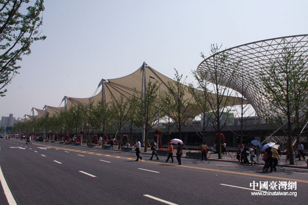 白天的世博轴,像一张张“白帆”。(中国台湾网 钟宝华 摄)